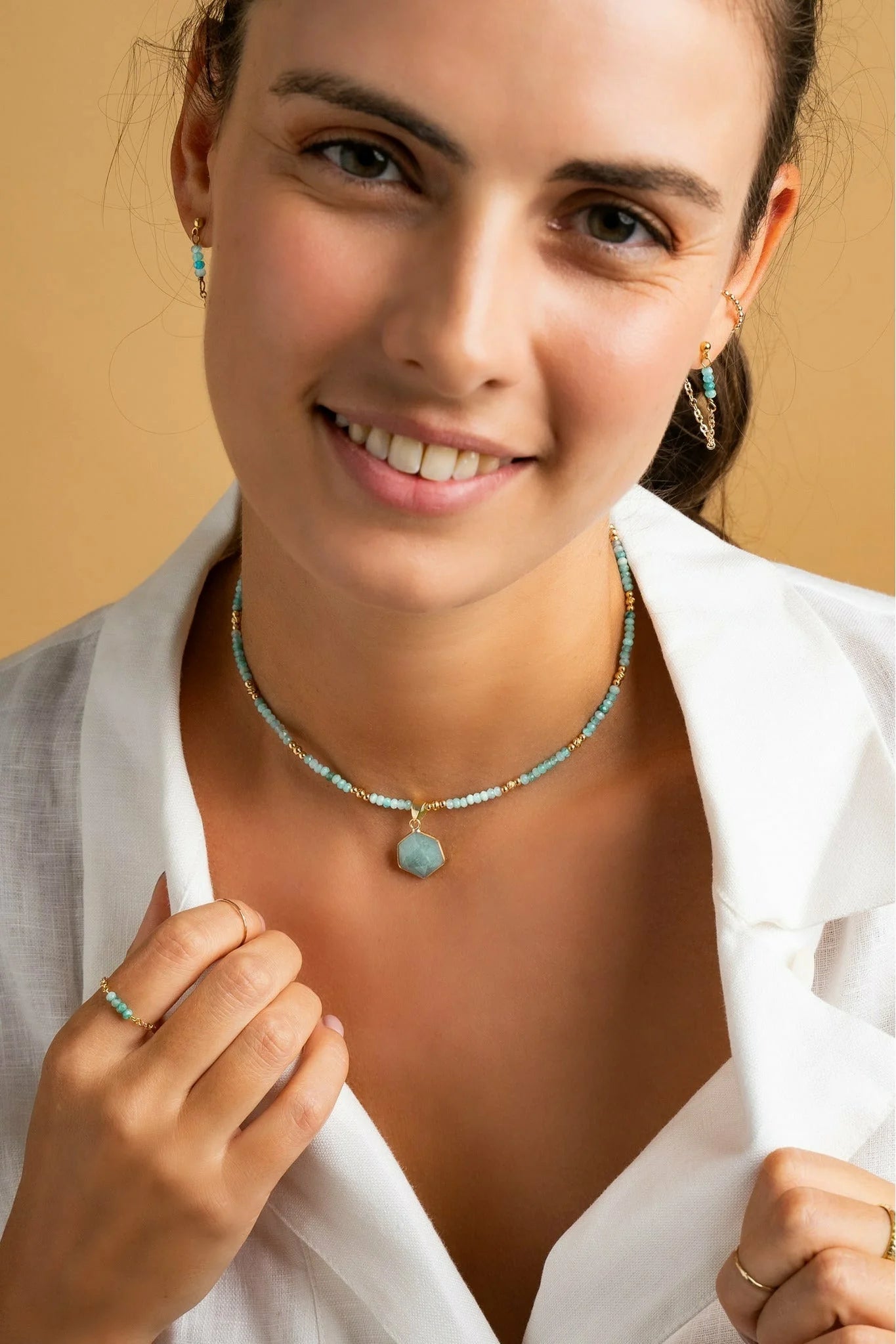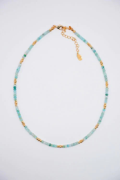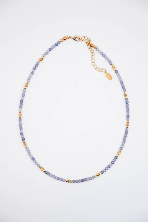 The Celestial necklace adds the perfect touch of shimmer to your life. Its alternating design of semi-precious stones and gold-filled beads sparkle in the sunlight, reminding you to radiate brilliance and beauty.