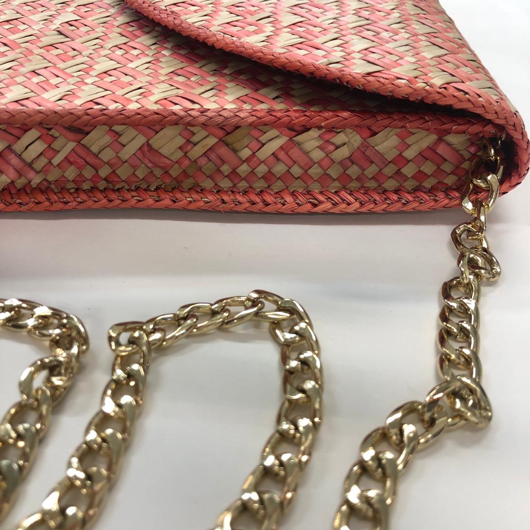 This unique clutch cum sling bag is woven with mengkuang kelarai. Hand-woven using mengkuang (South-East Asian screw pines: family Pandanaceae) this clutch is lovingly hand-woven by an elderly weaver in Terengganu. Kelarai is a fine weaving technique which has become increasingly rare. All of our kelarai pieces are our last pieces in stock, as the weaver is no longer weaving them.