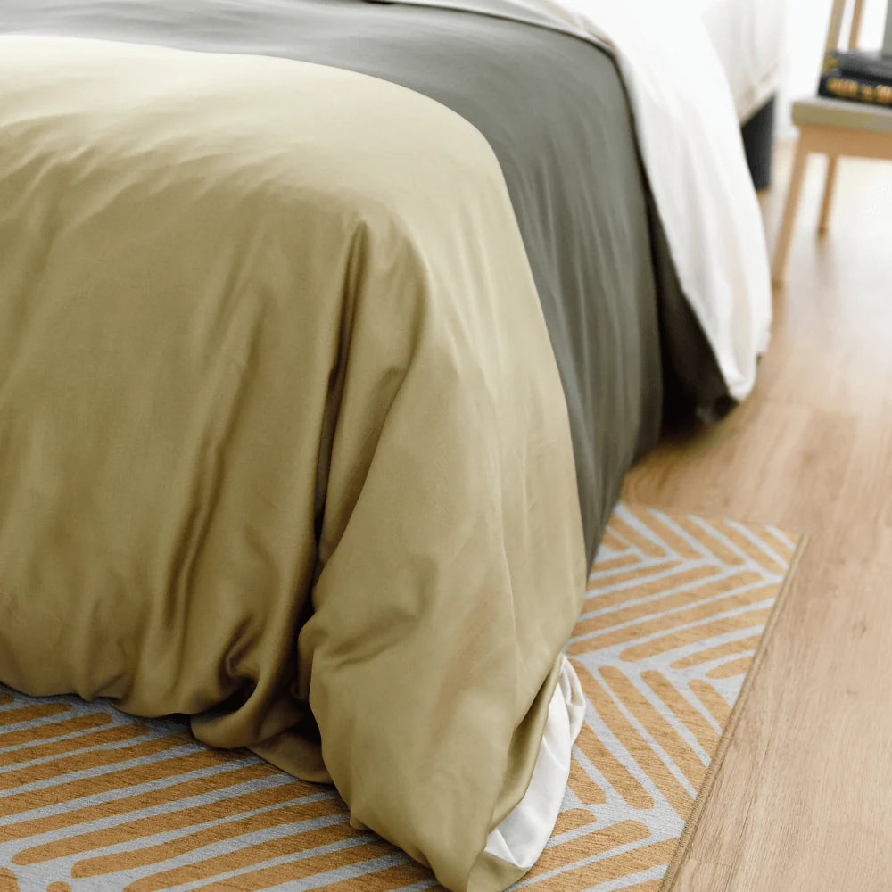 Provenance was created in recognition of the simple things that we yearn for in light of the many constraints placed on us last year. In line with the theme of stripping down to our core essentials, the duvet cover features a horizontal dual block to mimic the look of a throw blanket. The duvet cover can be flipped over for a solid minimalistic look in Vanilla Mist.