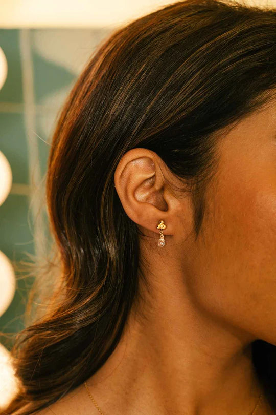 Inspired by the festive mistletoe, a symbol of love and healing. Paired with imperial topaz gemstones, this pair radiates a lasting grace. This statement piece shines beautifully on its own and makes a heartfelt gift for someone dear.