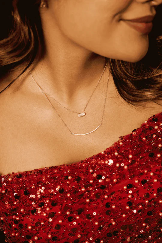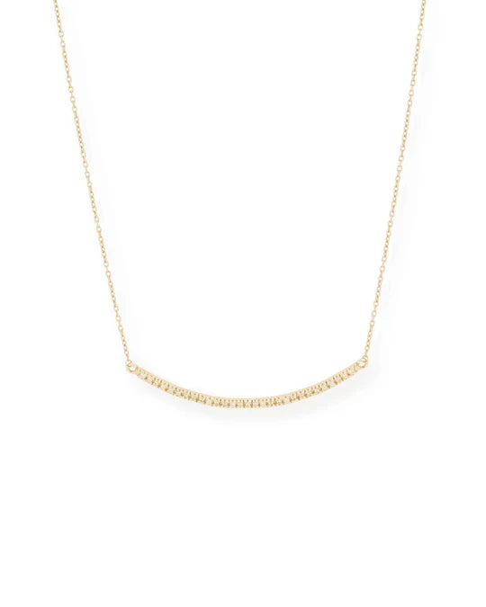 The shortest day of the year, the longest night of the year. The Solstice Arc Necklace was designed around the idea of the beautiful arc that happens during the transitional period of the winter solstice. Set with a row of pavé white-topaz gemstones, this piece sparkles both on its own and in your holiday-ready stack.
