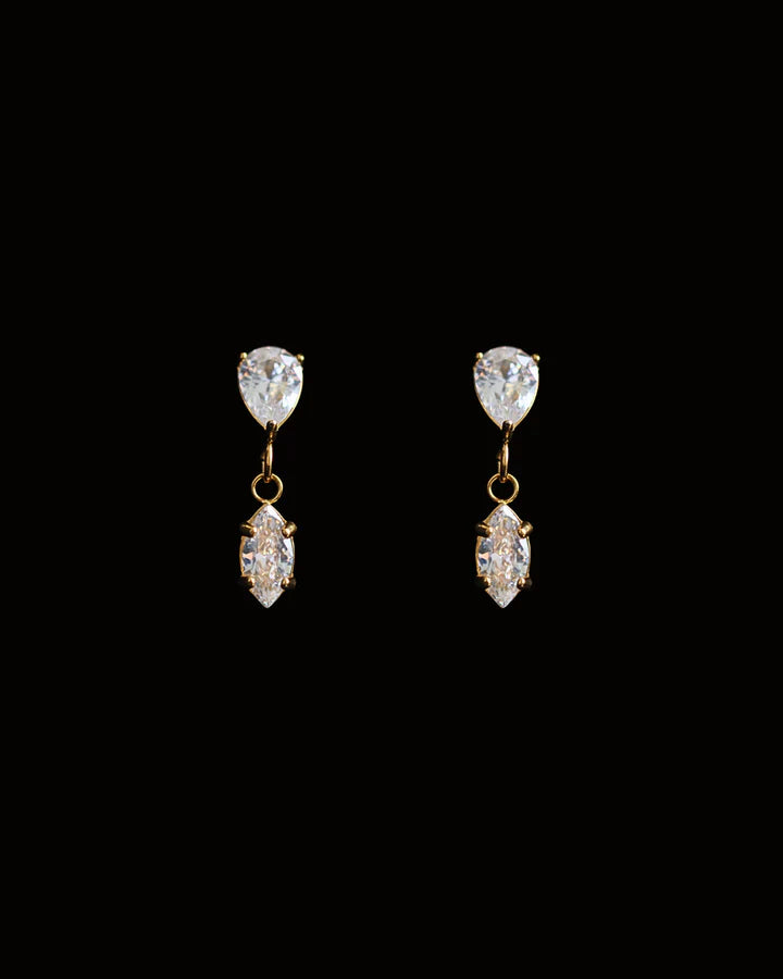 Crafted from high-quality stainless steel and plated in 18K gold, the marquise and teardrop cubic zirconia diamond adds a modern twist, bringing a hint of sparkle and romance.