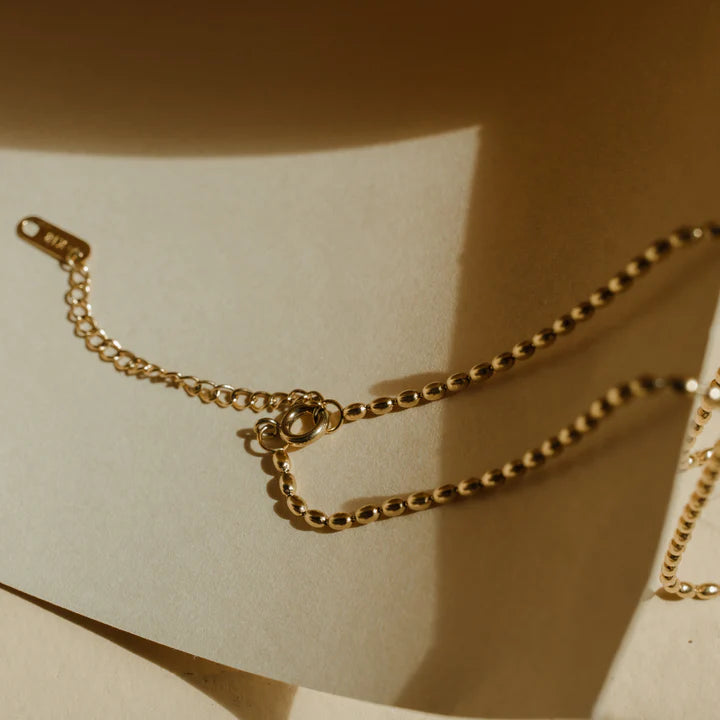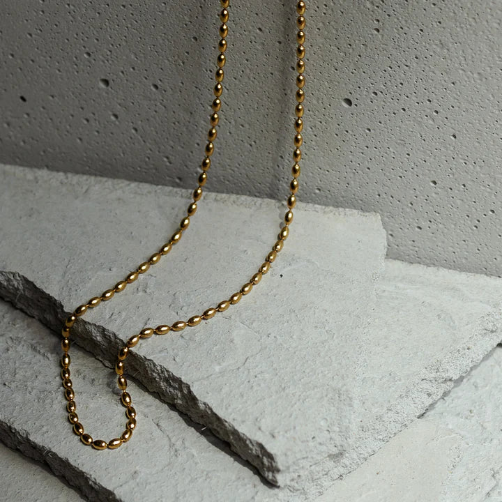 A gender-fluid piece in our collection, that is great for layering with another statement necklace. The necklace comes in Gold-plated Stainless Steel. Highly durable as both versions resist tarnishing, it will stay beautiful for years to come.