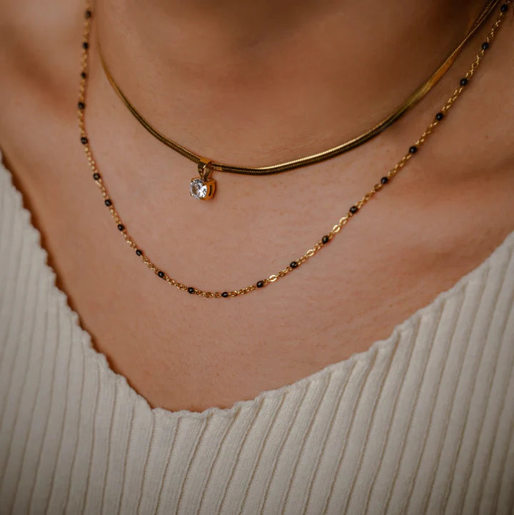 At MOODD, we believe beautiful jewelry should be easy to layer. If you're looking to layer your neckwear, this minimalist Solitaire Necklace is a style staple! It's also a beautiful piece to wear on its own. Made to last, it is crafted in 18k Gold plated Sterling Silver and Cubic Zirconia stone. Layer it with our Mischa Cascade Necklace or Paperclip Link Chain Necklace.