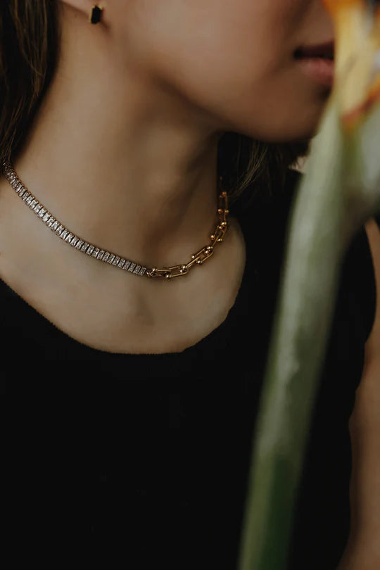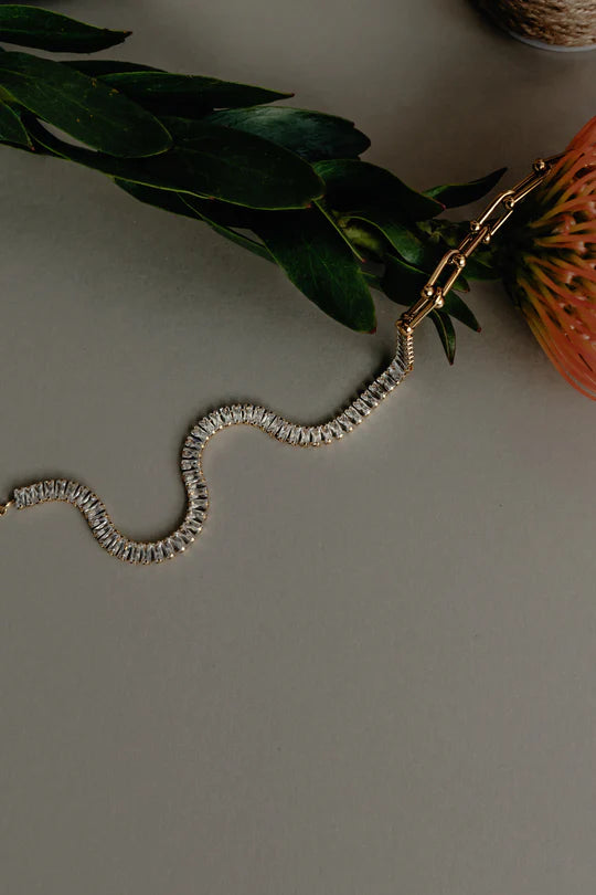 You can, in fact, have it both ways. Cool things down and create limitless looks with intentional contrast. Handcrafted in 18k Gold plated Sterling Silver featuring Baguette Cubic Zirconia stones. Show off the bling, the gold, or both—your way is best.