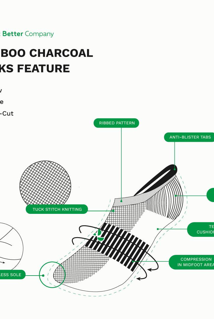 Just Better Company began with the simple goal of designing the ideal pair of socks. A pair that did not skimp on quality, price, or the environment. They chose socks because it's a garment that many people take for granted. Many don’t realize that the feet are the foundation of your body and that keeping them healthy is vital. Today, we’ve proven that a good pair of socks do make a difference to a person’s wellbeing.
