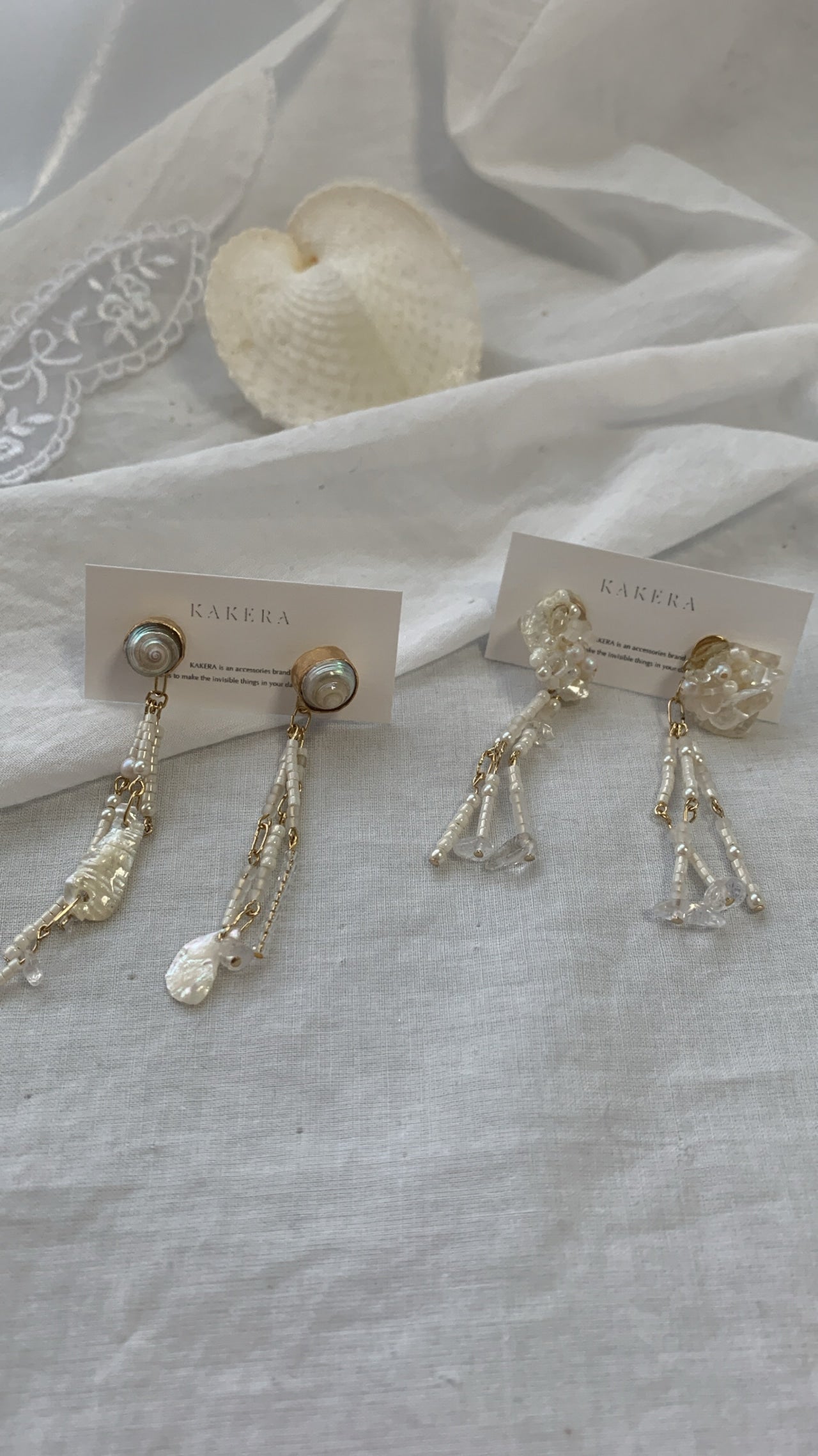 Material: White conch shell, freshwater pearl, beads, Silver925 K18YG coating