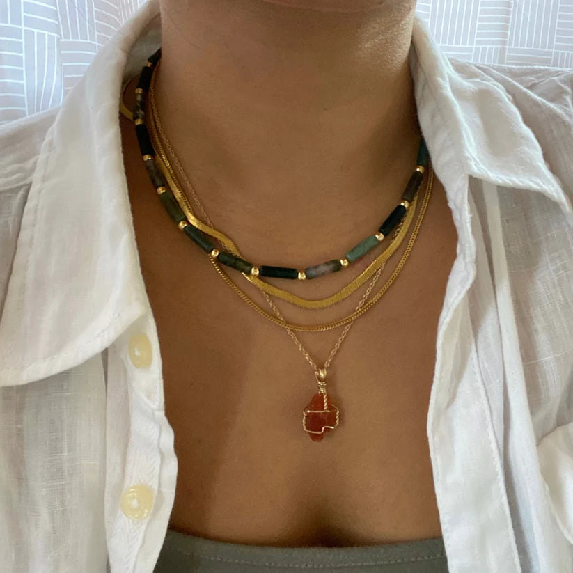 Earthy Necklace is our best selling jewellery year after year. It pairs perfectly with any outfit, while carrying a divine energy. Crafted from Indian Agate, it brings a soothing, calming sense of peace to the wearer, allowing them to feel connected with Mother Nature.