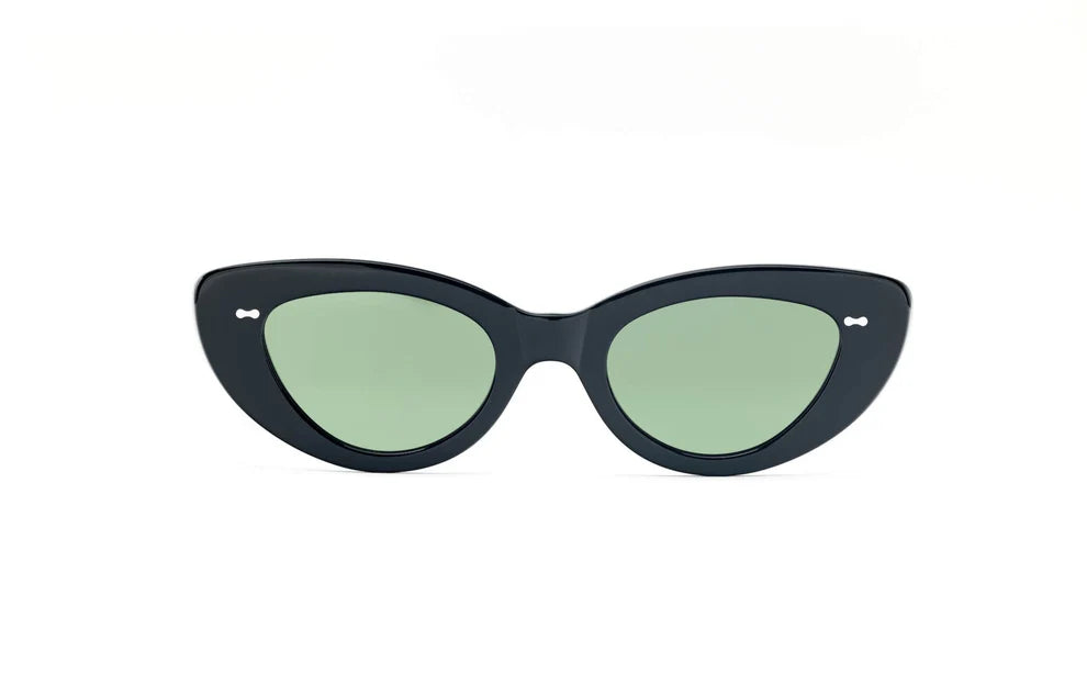 Cat-eye frame with sharp lines, inspired by glamorous icons of the 50s. A bold retro statement.