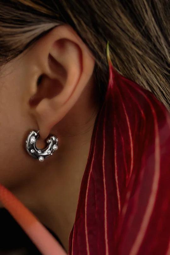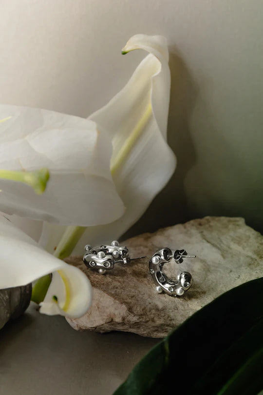 You can have it both ways. Edgy and classy. Cool things down and create limitless looks with intentional contrast. Handcrafted in 18k Gold or Rhodium plated sterling silver featuring tiny pearls.