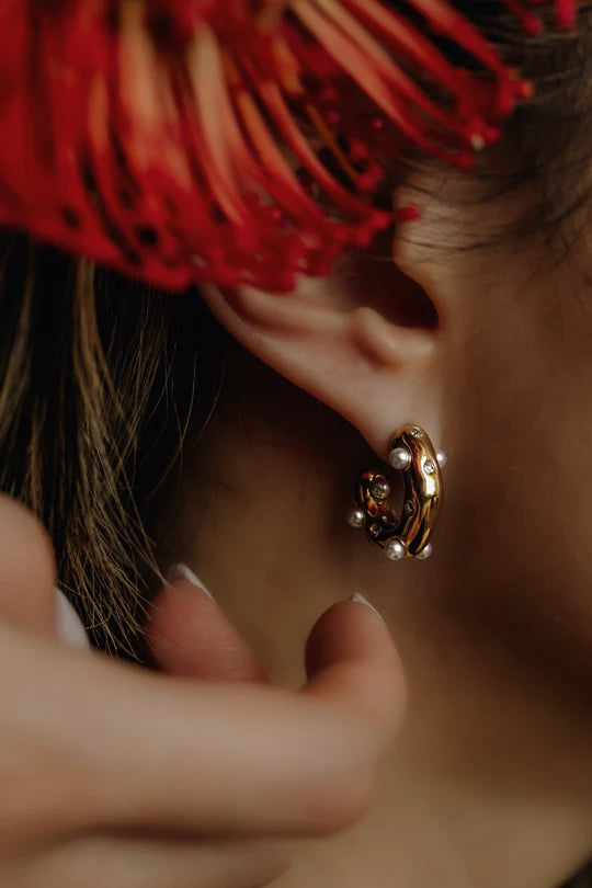 - Material: 18k gold and Rhodium plated Sterling Silver, Pearls