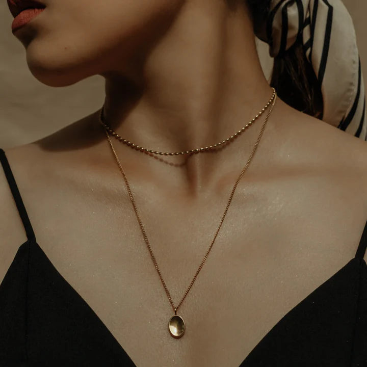 At MOODD, we believe beautiful jewelry should be easy to layer. If you're looking to layer your neckwear, this versatile Lunis Dome Necklace is a style staple! It's also a beautiful piece to wear on its own. Made to last, it's crafted in 18k Gold Plated Sterling Silver.