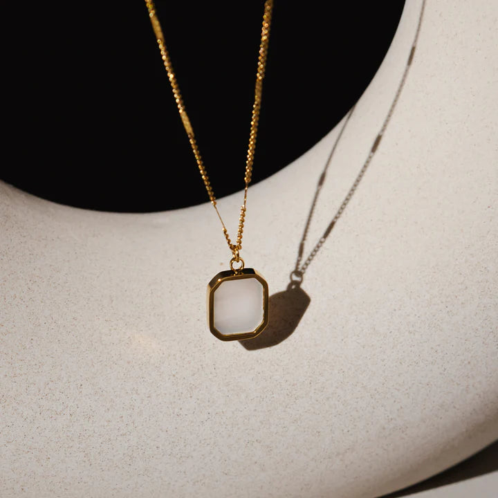 At MOODD, we believe beautiful jewelry should be easy to layer. If you're looking to layer your neckwear, this versatile Shellstone Octagonal Necklace is a style staple! It's also a beautiful piece to wear on its own. Made to last, it's crafted in 18k Gold Plated Sterling Silver.