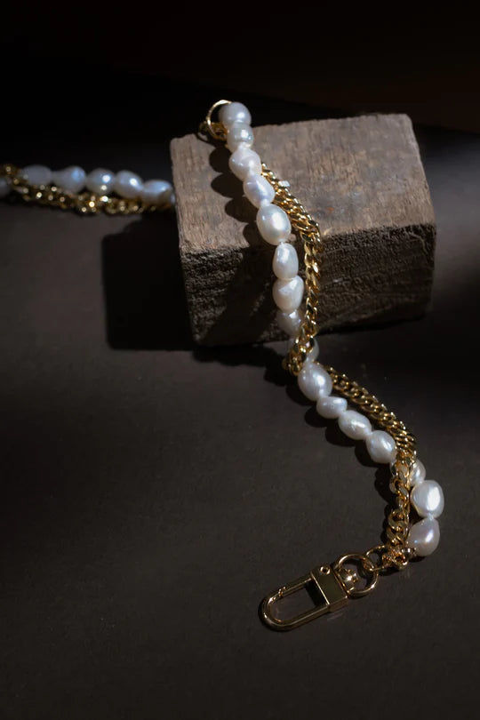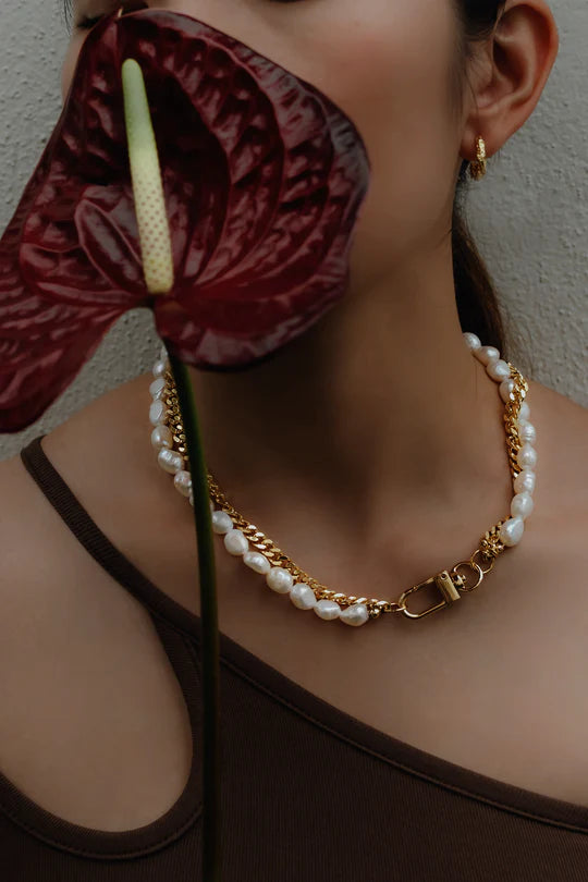 One of our favorites in the new collection. Hand-crafted in 18k Gold plated Sterling Silver and Freshwater Pearls. Our Shiso Pearl Chain Choker is the perfect complement to any outfit. Wearable with the clasp at the front, at the side or at the back, it’s your choice.