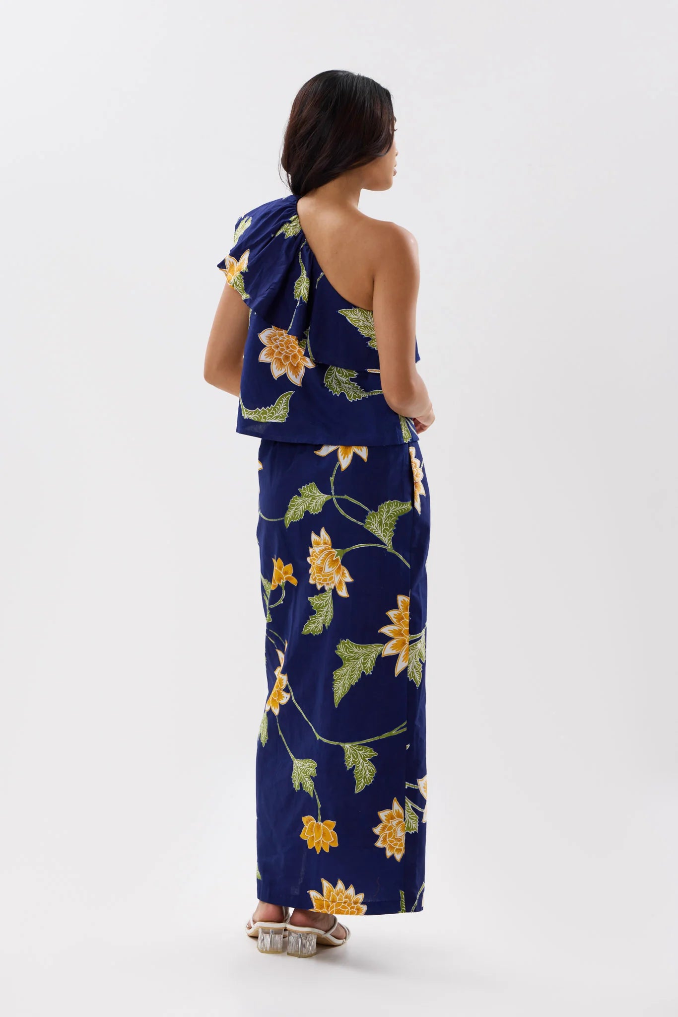 Brown and yellowish spots found on fabric are wax residue from the batik process which can be removed with washing