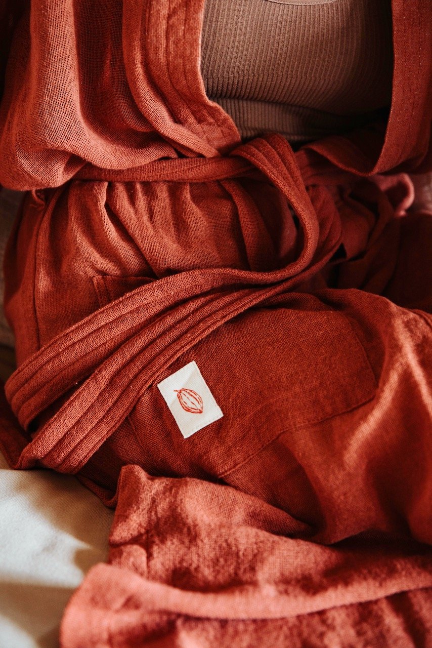 The self-love kimono! Made of vegan silk, this soft and cosy kimono feels like a second skin. Elegant, relaxed and sexy: The red kimono fits well with a pair of jeans, a bikini, in the spa, or over a yoga outfit - and of course at home with your morning matcha, for meditation or snuggled up in bed.