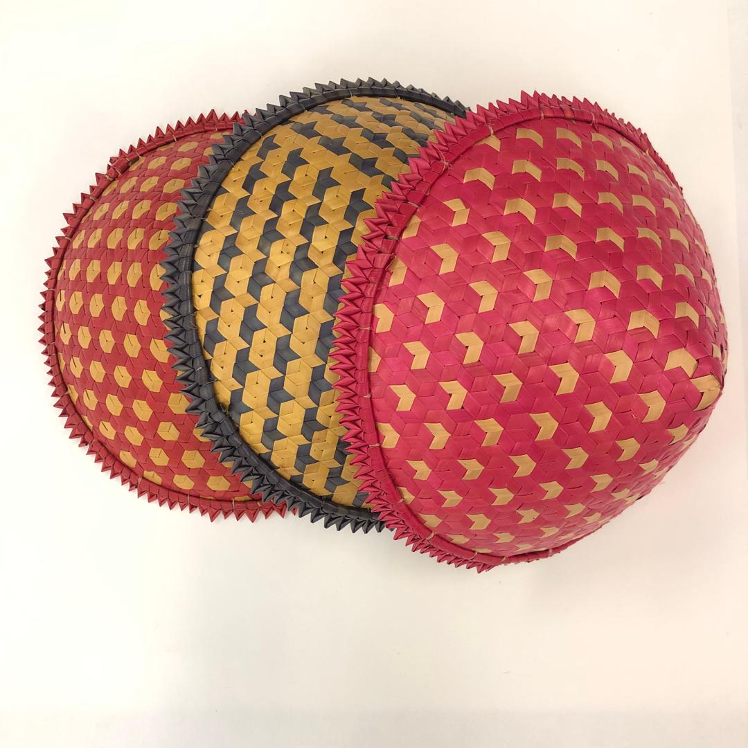 This handwoven mengkuang (South-East Asian screwpines: family Pandanaceae) food cover is lovingly handwoven by a women's village cooperative, in Terengganu. Mengkuang leaves are harvested, dried, dyed, woven into mats first, and then made into this pochette.