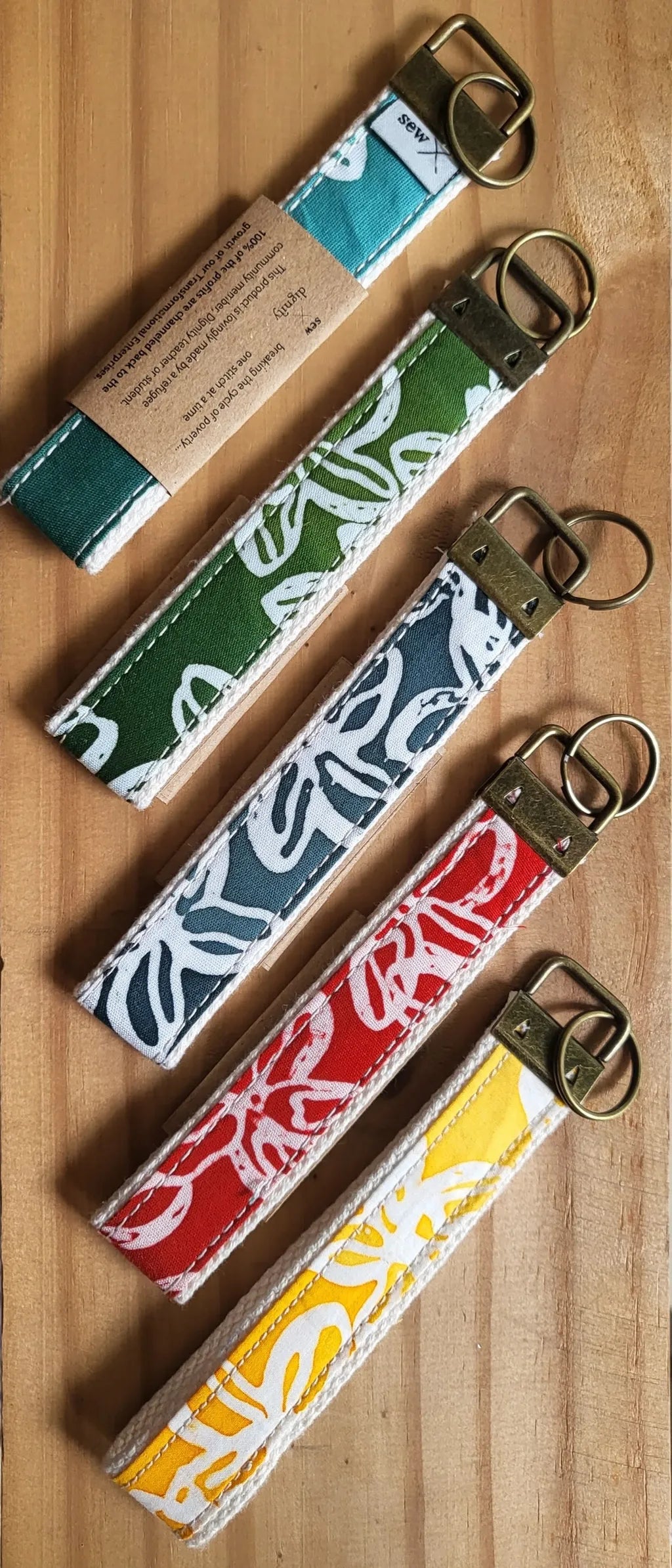 Find your keys right away with these bright batik keychains. We use fabric remnants to craft these lovely keychains, so each piece will have a unique/slightly different pattern!