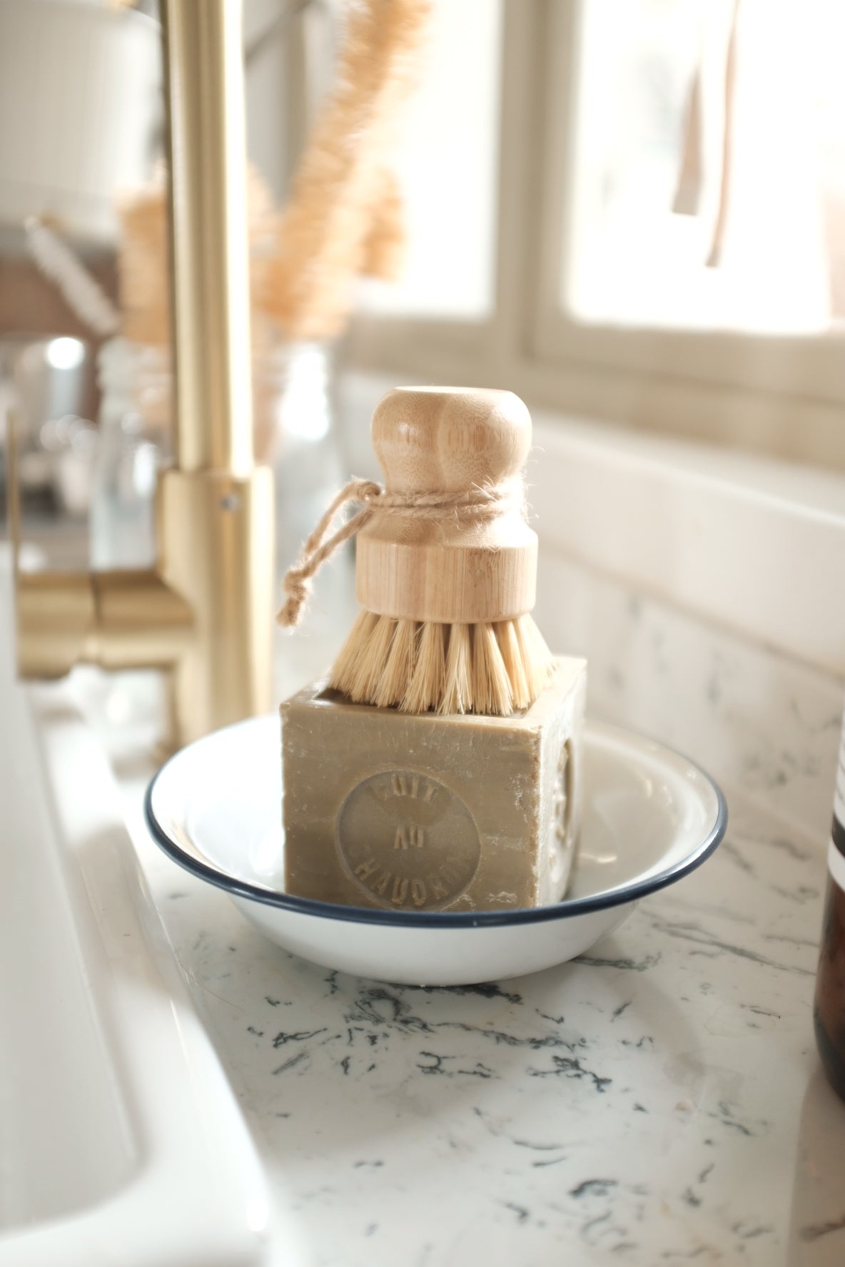 Wooden pot brush, Ideal for scrubbing pots, pans and dishes. Fits well in the palm of your hand. This pot brush has plant-based bristles so will not shed micro-plastics into the ocean.