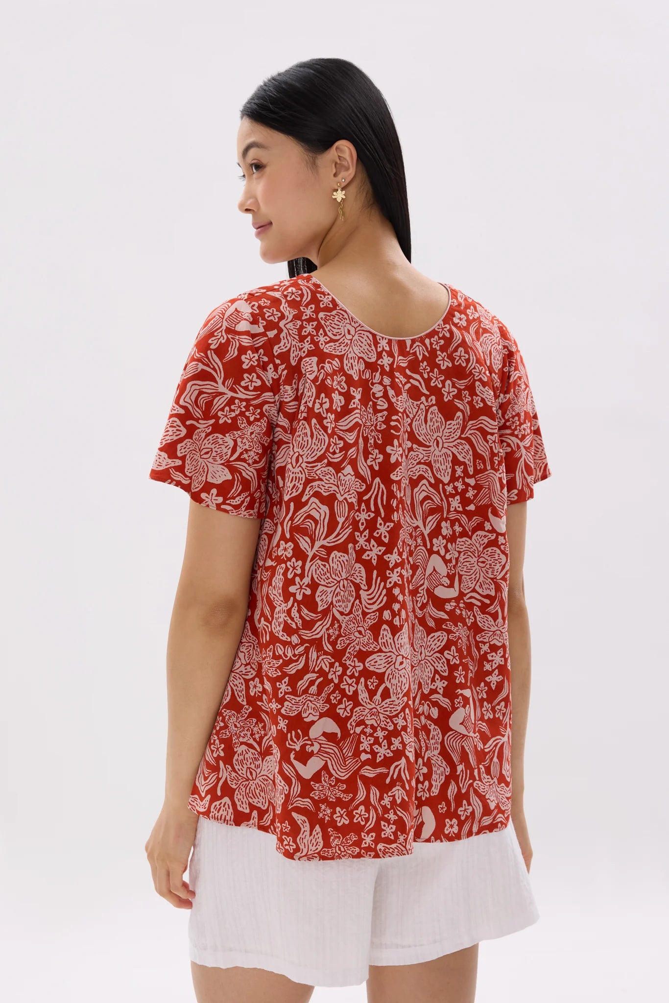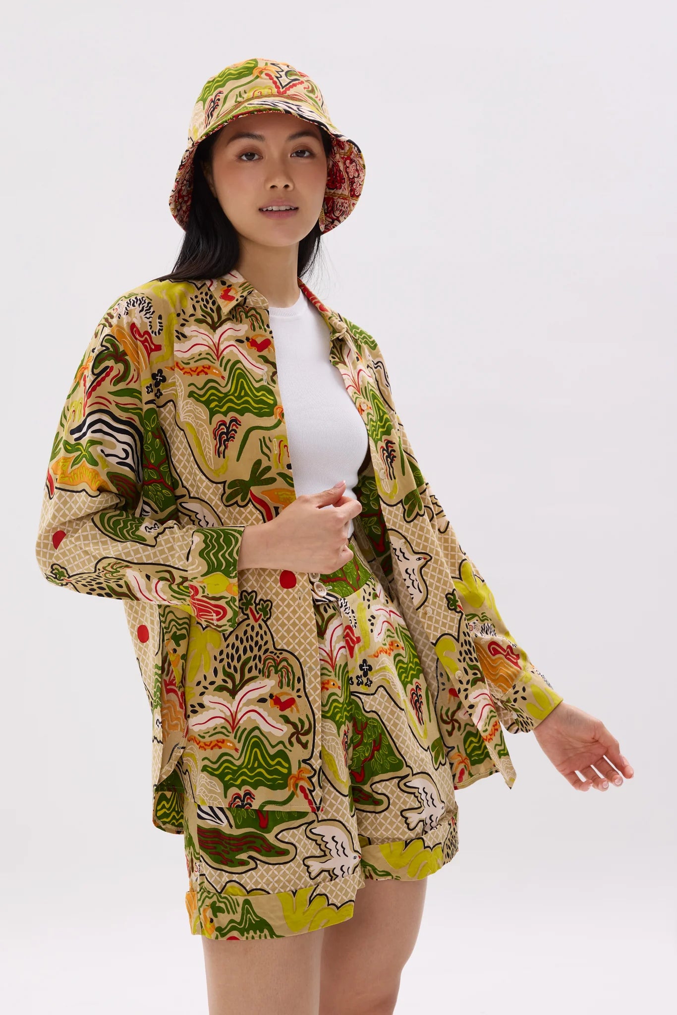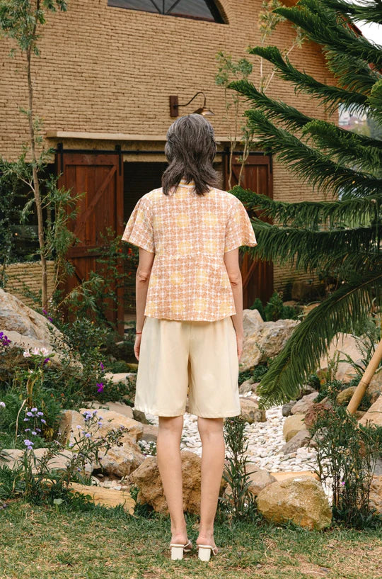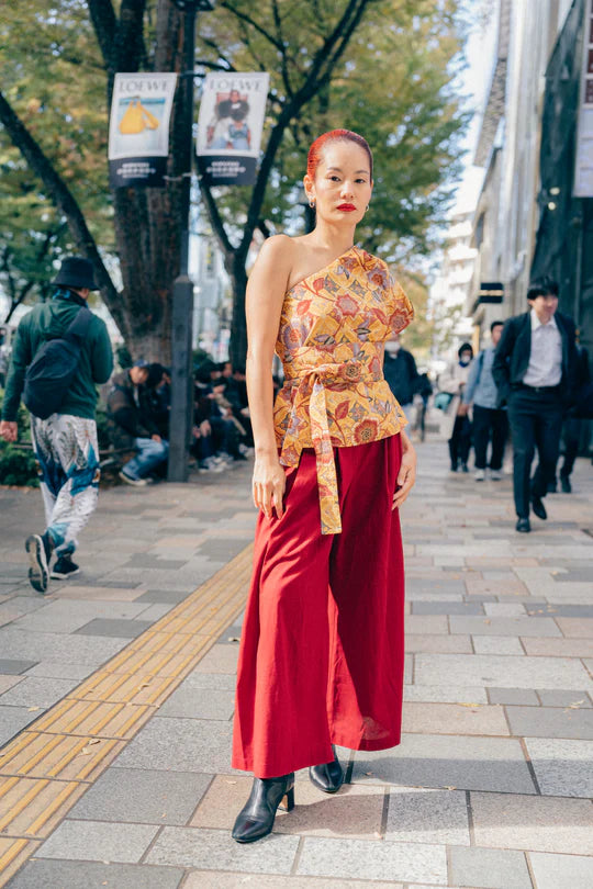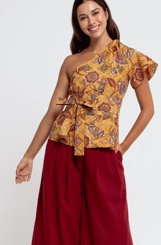 BATIK OFF-SHOULDER TOP - BROWN/YELLOW