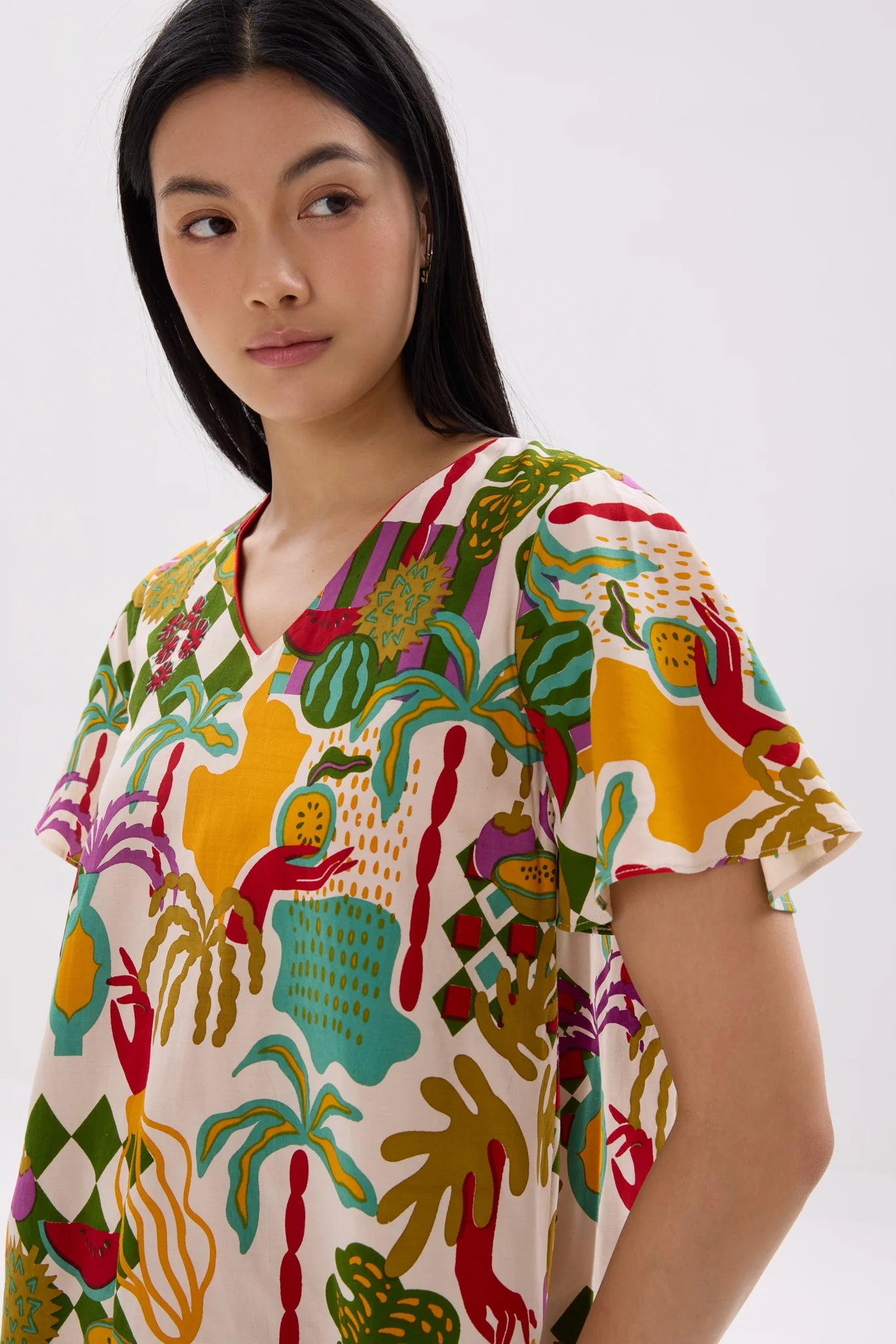 BATIK OFF-SHOULDER TOP - RAINBOW