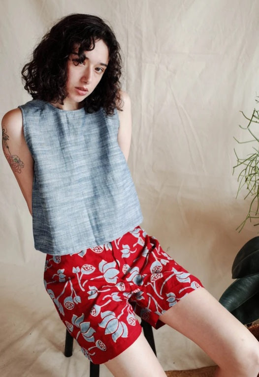 Color: Hand-drawn and hand-printed Water Lilies in collaboration with Studio Bagru. 100% cotton.