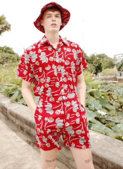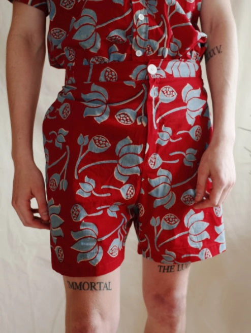 Signature Shorts in Water Lilies by Seeker x Retriever. A classic pair of shorts made from handprinted cotton. Comes with classic zip, button closure and elastic waist for comfort.