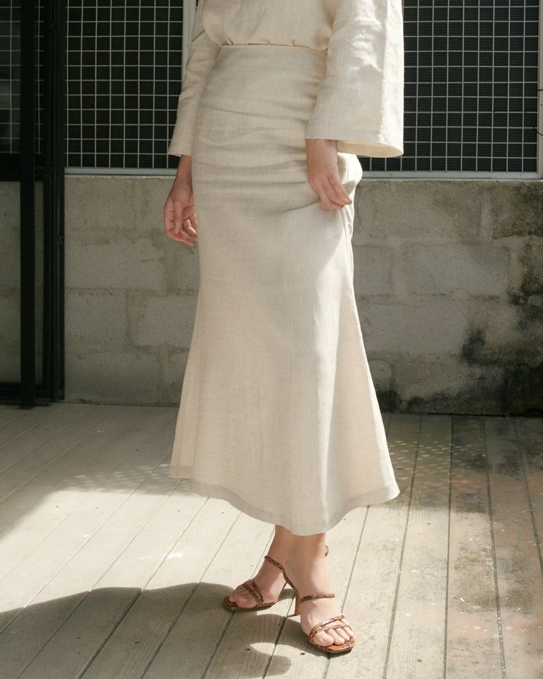High-waisted maxi skirt that comes with lining and concealed zipper opening. Designed with a slightly curved hem to elevate the whole shape and look.