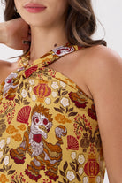 Brown and yellowish spots found on fabric are wax residue from the batik process which can be removed with washing