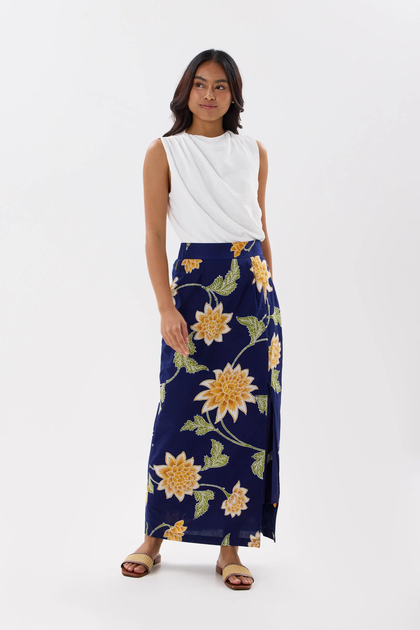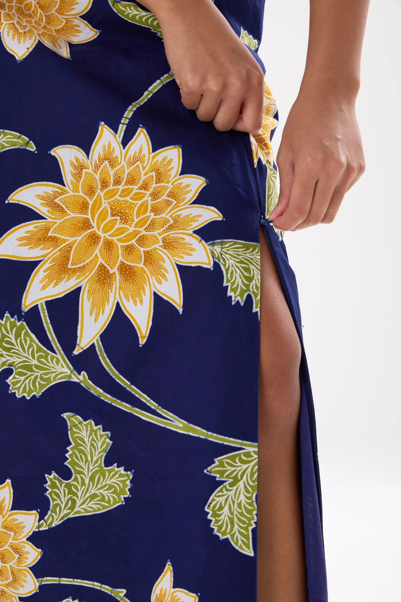 - Adjustable side slit detail with hidden zip access