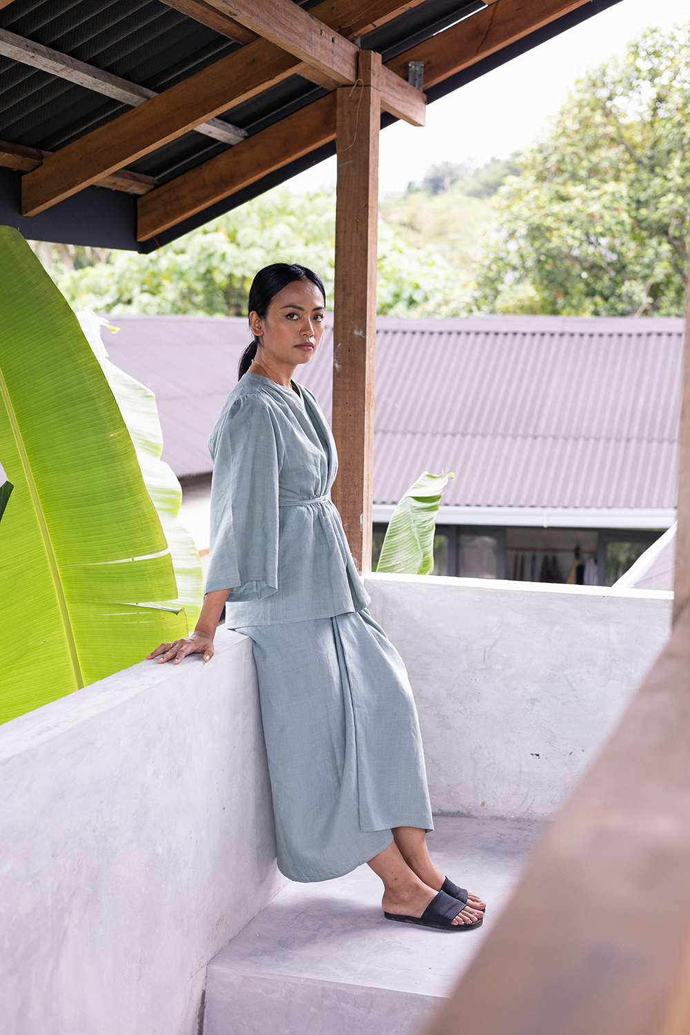 A timeless silhouette meets the beauty of nature in the Grace Linen Set—a refined ensemble crafted from breathable 100% linen and naturally dyed with local studio, MUNI, to achieve its earthy, muted tones.