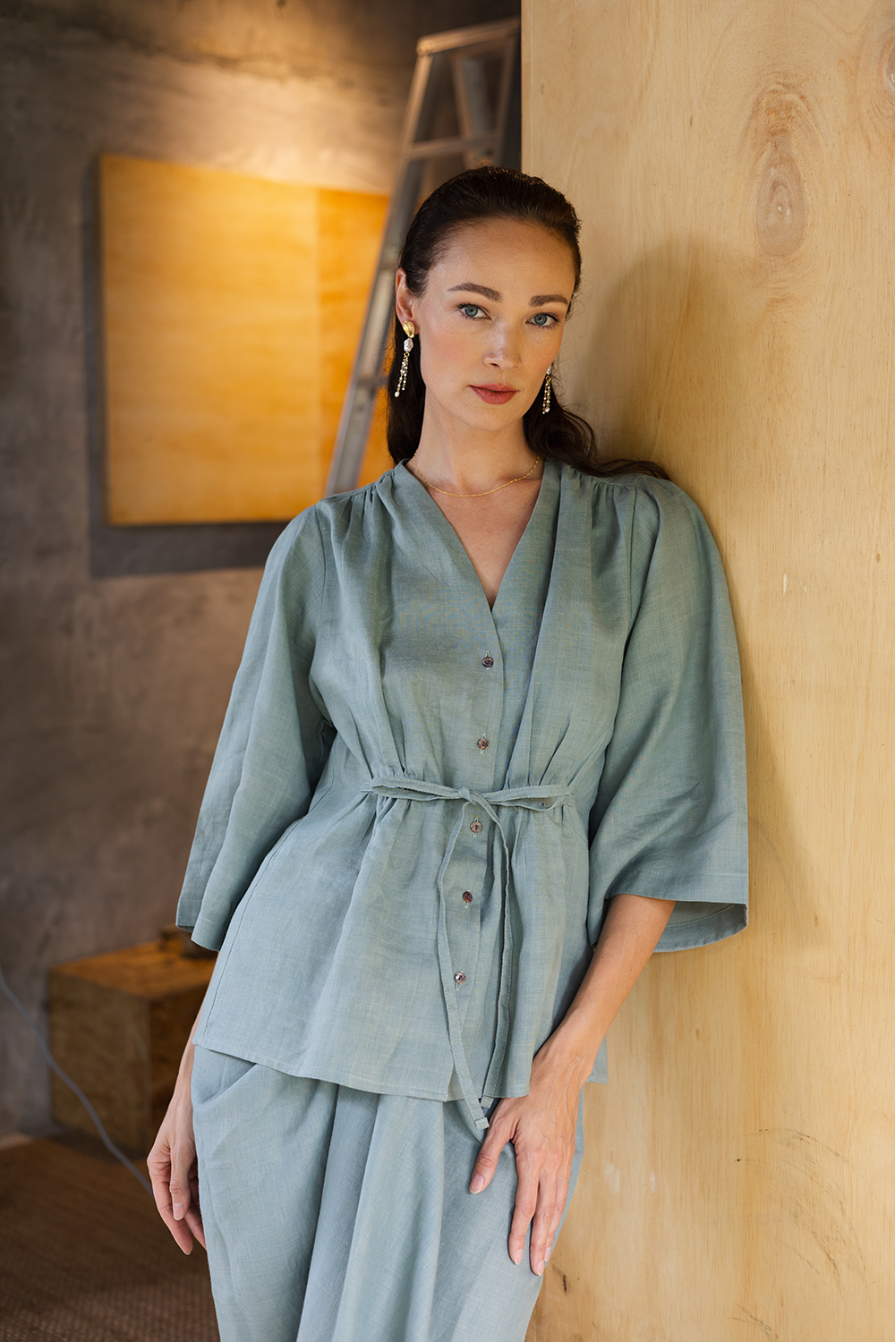Grace Top is designed with soft pleats, delicate button details, and a cinched waist, this set offers effortless elegance and all-day comfort.