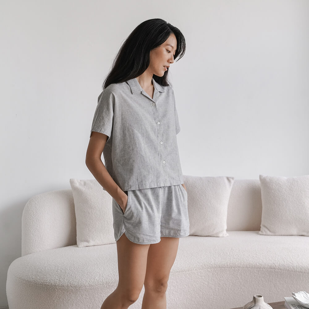 FRENCH LINEN HANG LOOSE BUTTON TOP