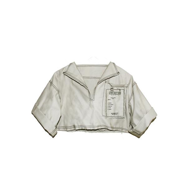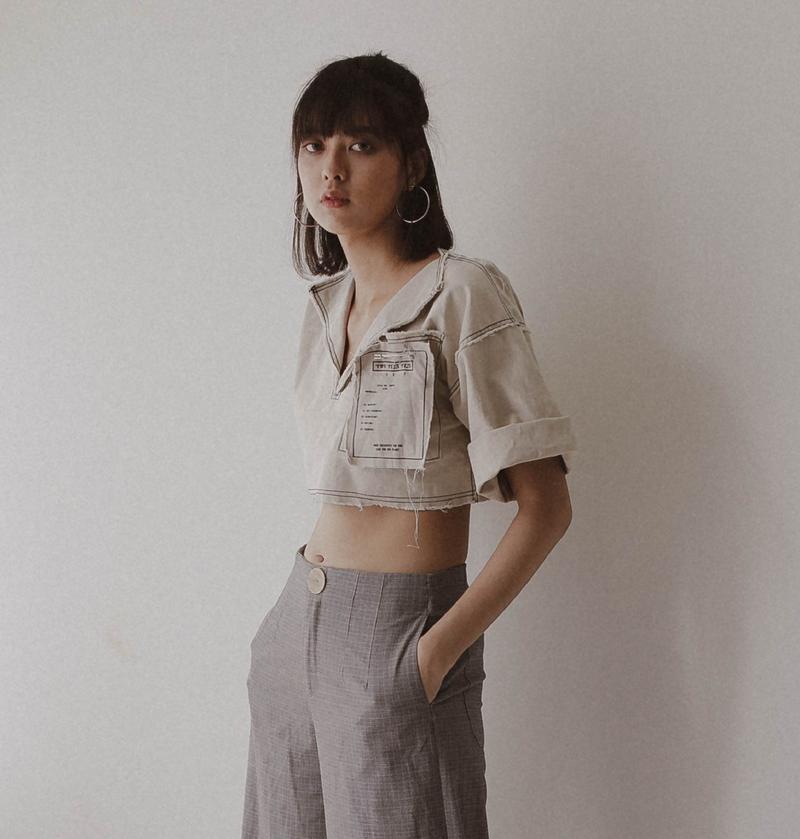 Crop top lovers where ya at? This cool and stylish beige top has black stitches to create a contrast look featuring our all time signature patch pocket design.