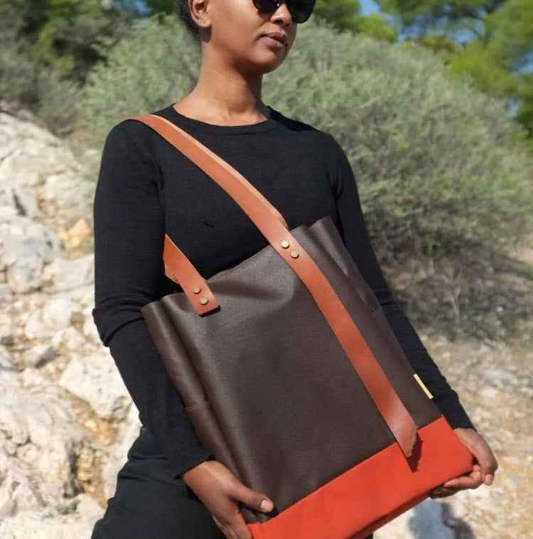 Flerry is a waterproof, spacious shoulder bag made from upcycled balcony awning fabrics. Each bag is a unique item made sustainably in Athens, Greece.