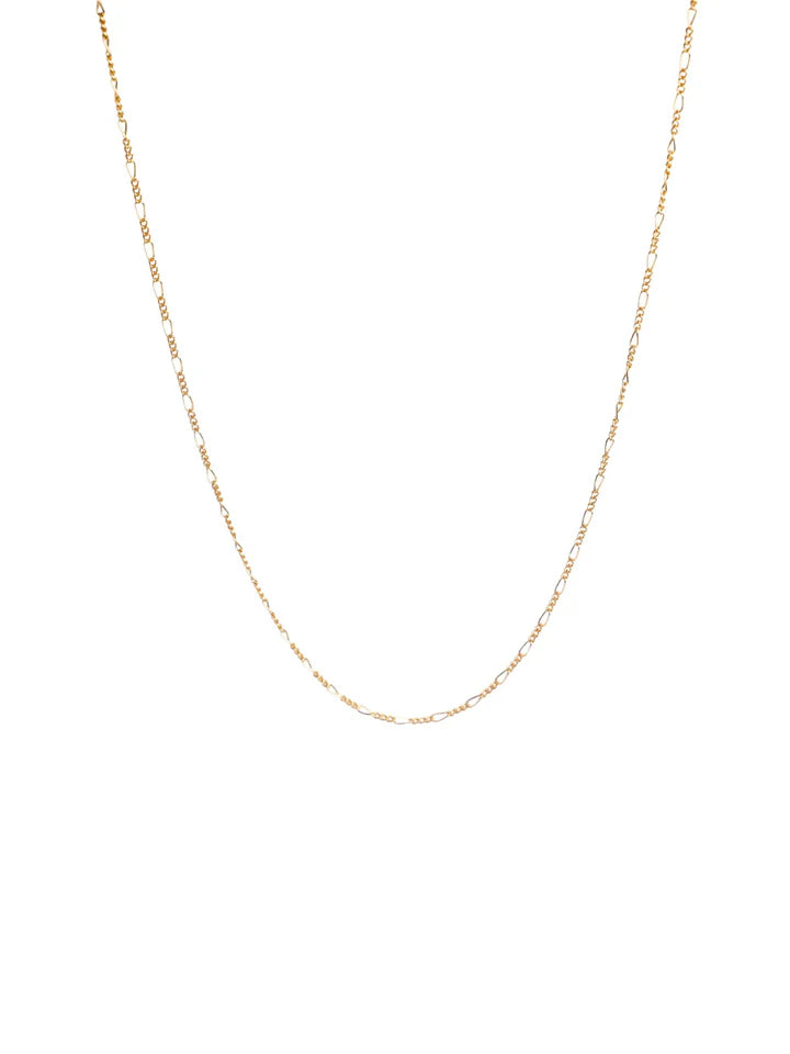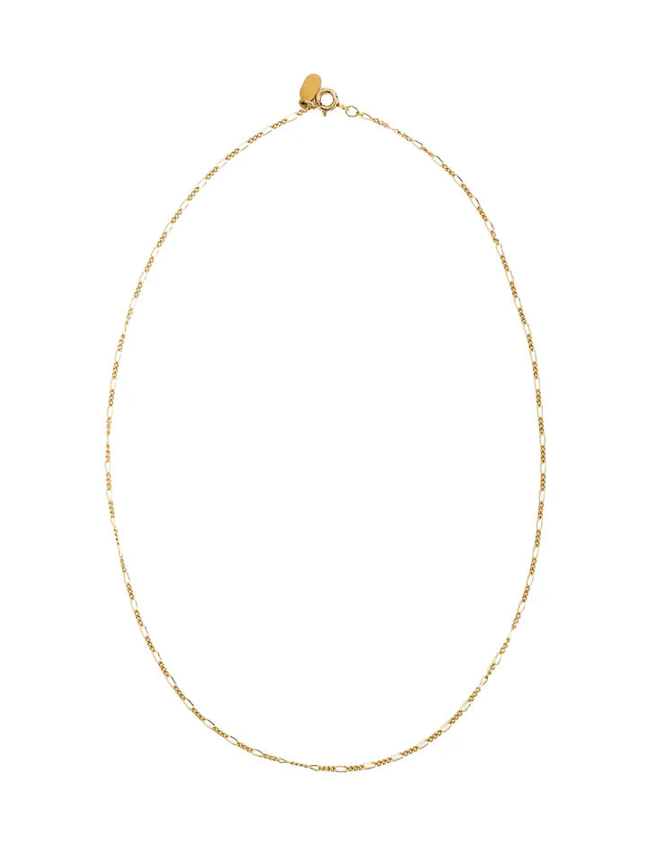 With its timeless design and elegant finish, this Figaro chain necklace is an essential piece that can be worn alone for a minimalist look or layered.