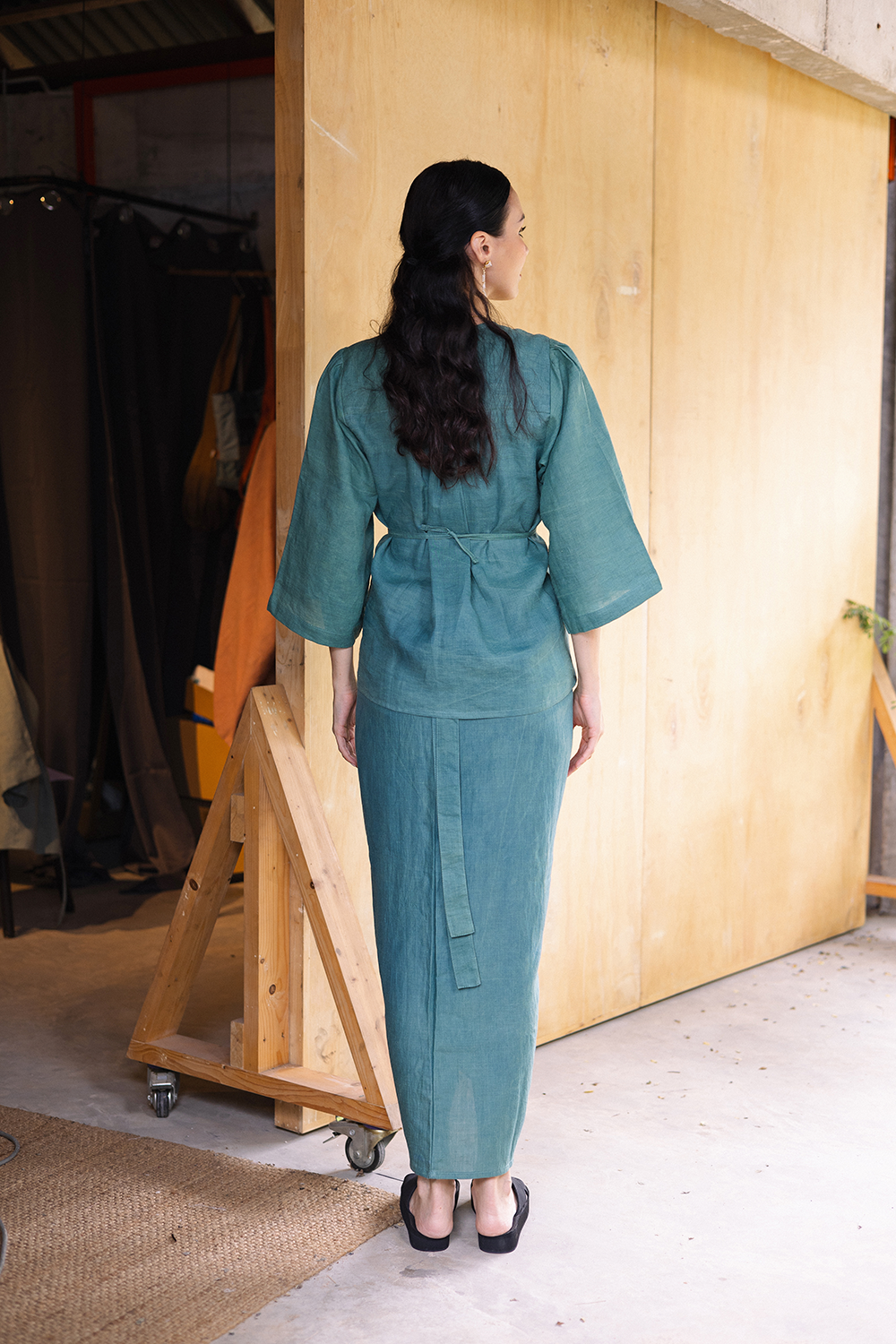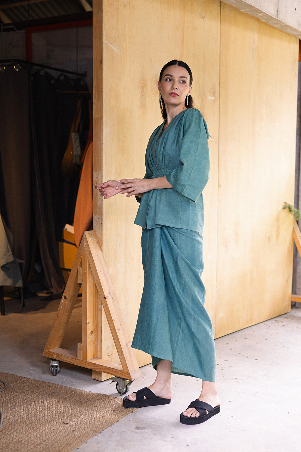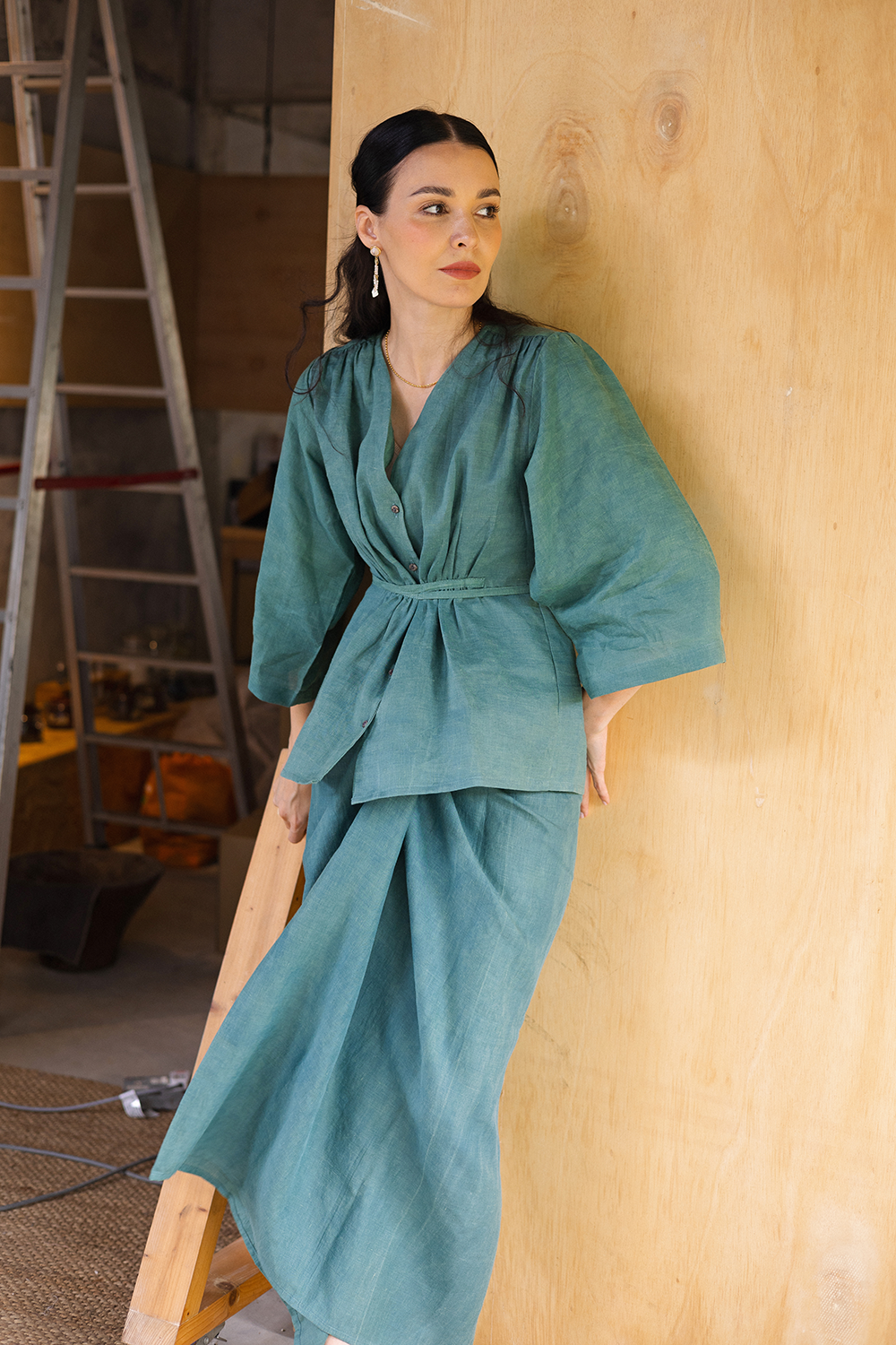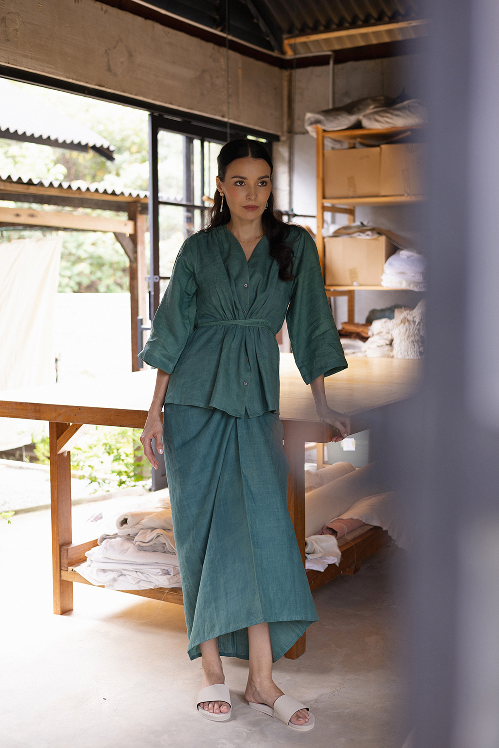 A timeless silhouette meets the beauty of nature in the Grace Linen Set—a refined ensemble crafted from breathable 100% linen and naturally dyed with local studio, MUNI, to achieve its earthy, muted tones.