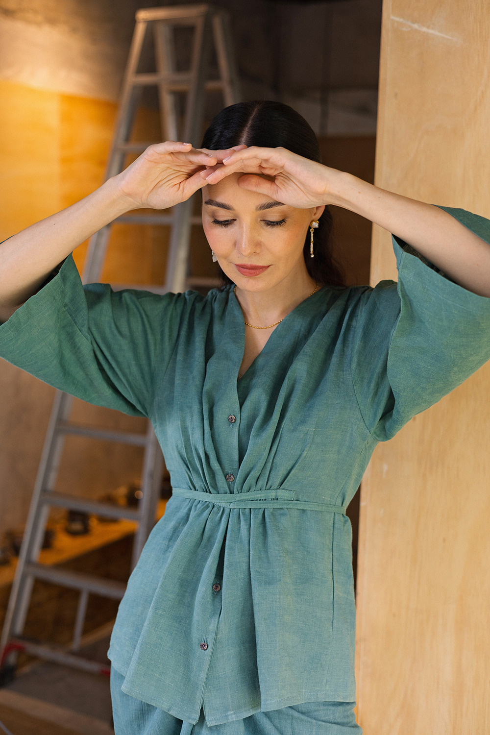 Grace Top is designed with soft pleats, delicate button details, and a cinched waist, this set offers effortless elegance and all-day comfort.