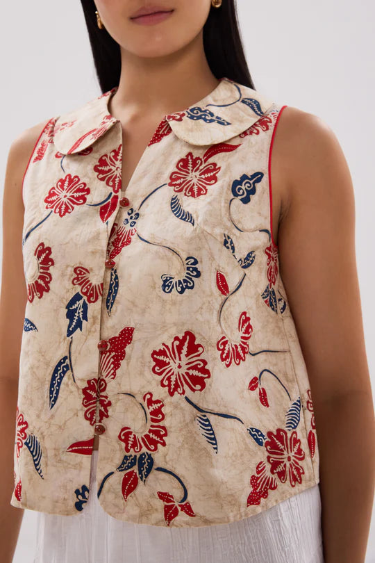 Brown and yellowish spots found on fabric are wax residue from the batik process which can be removed with washing