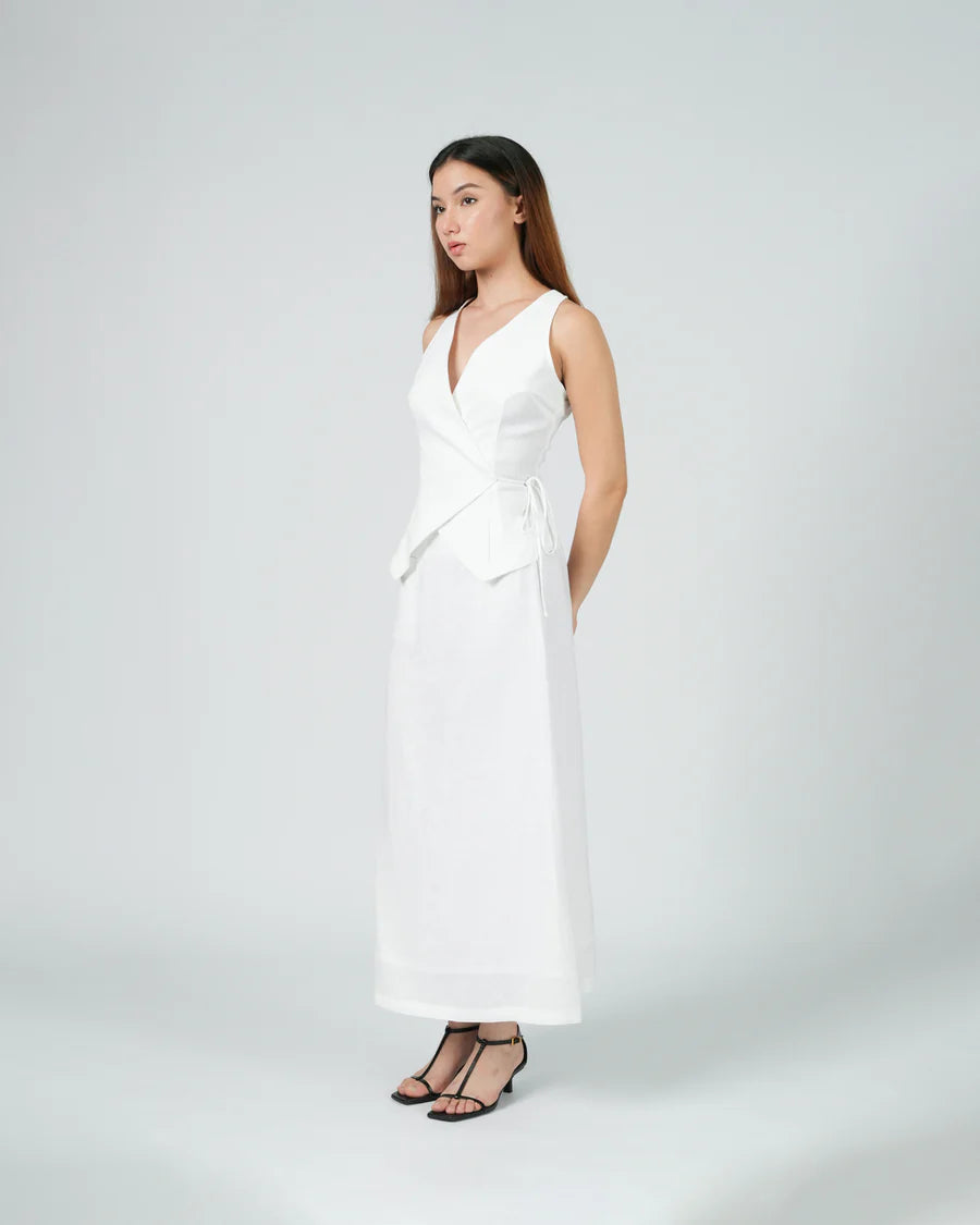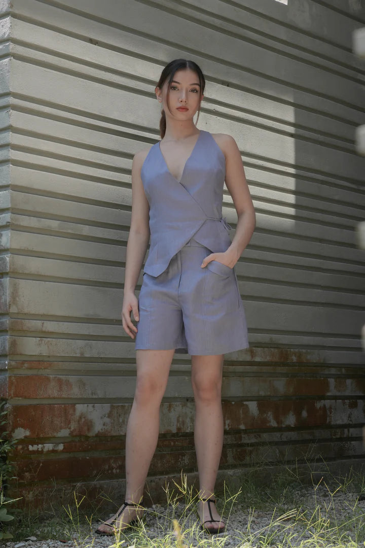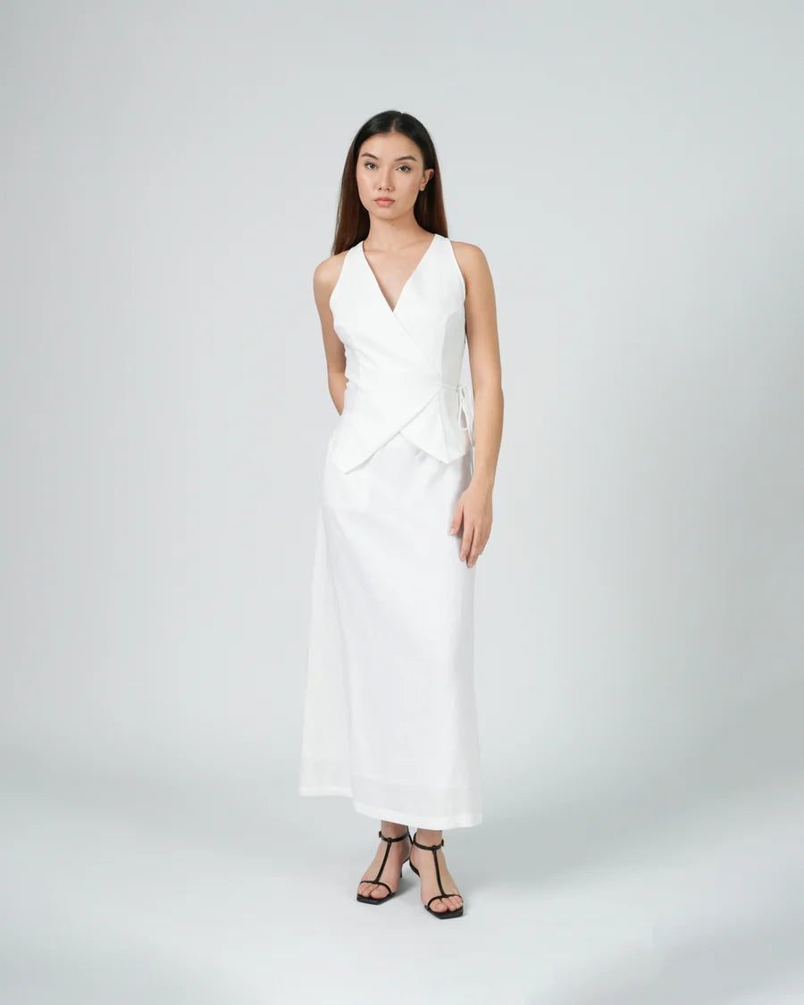 Wrap vest designed with racer back. The sash helps to adjust the fit.